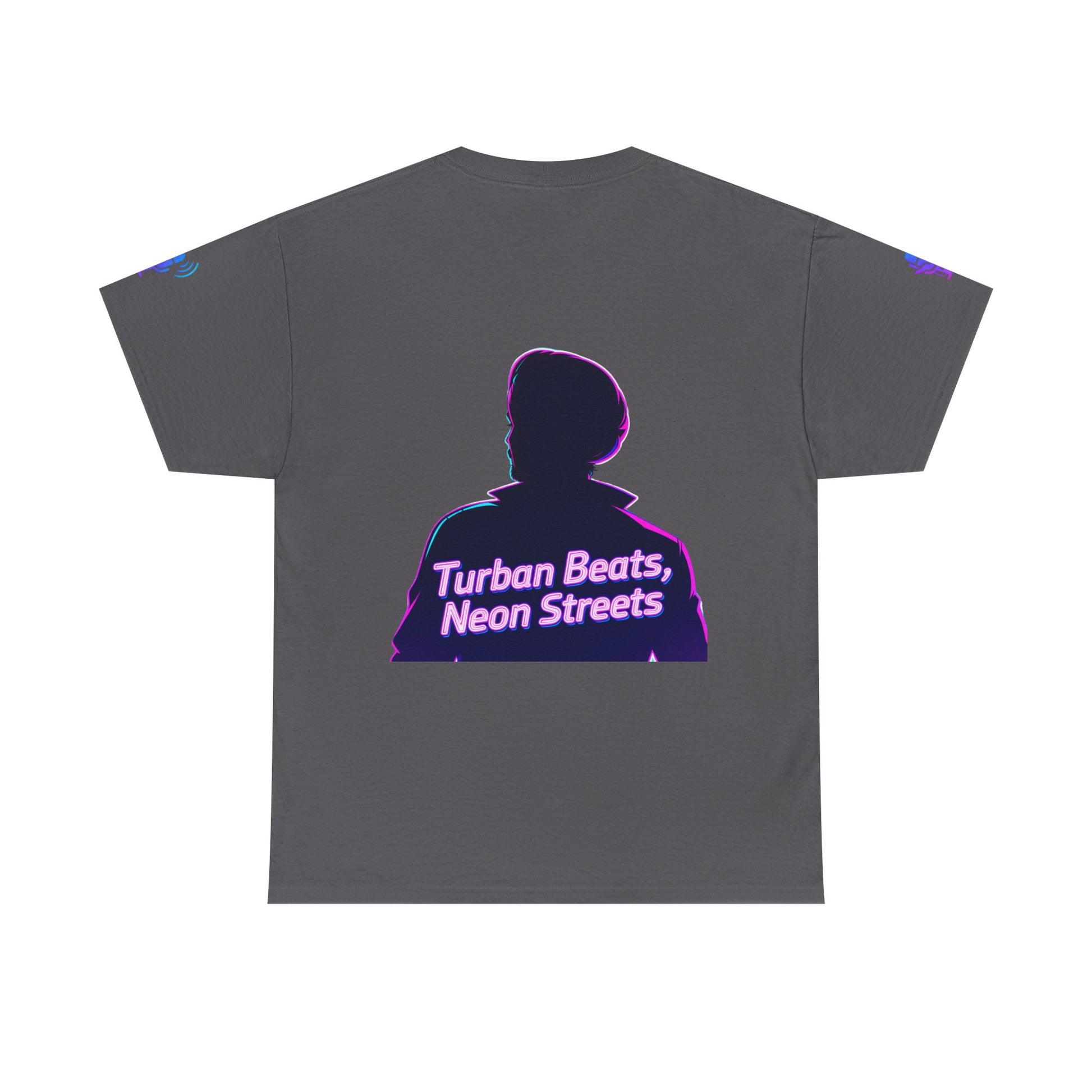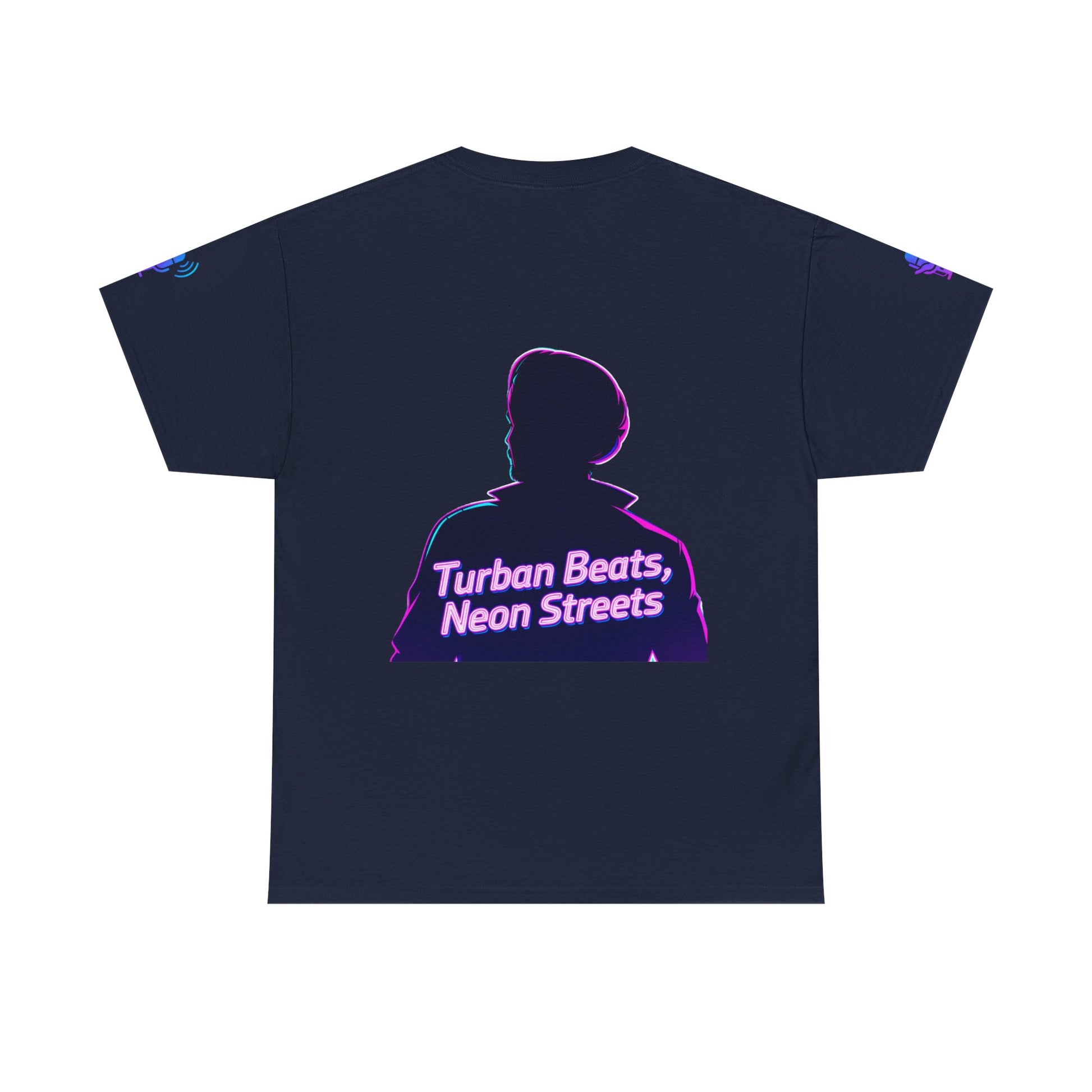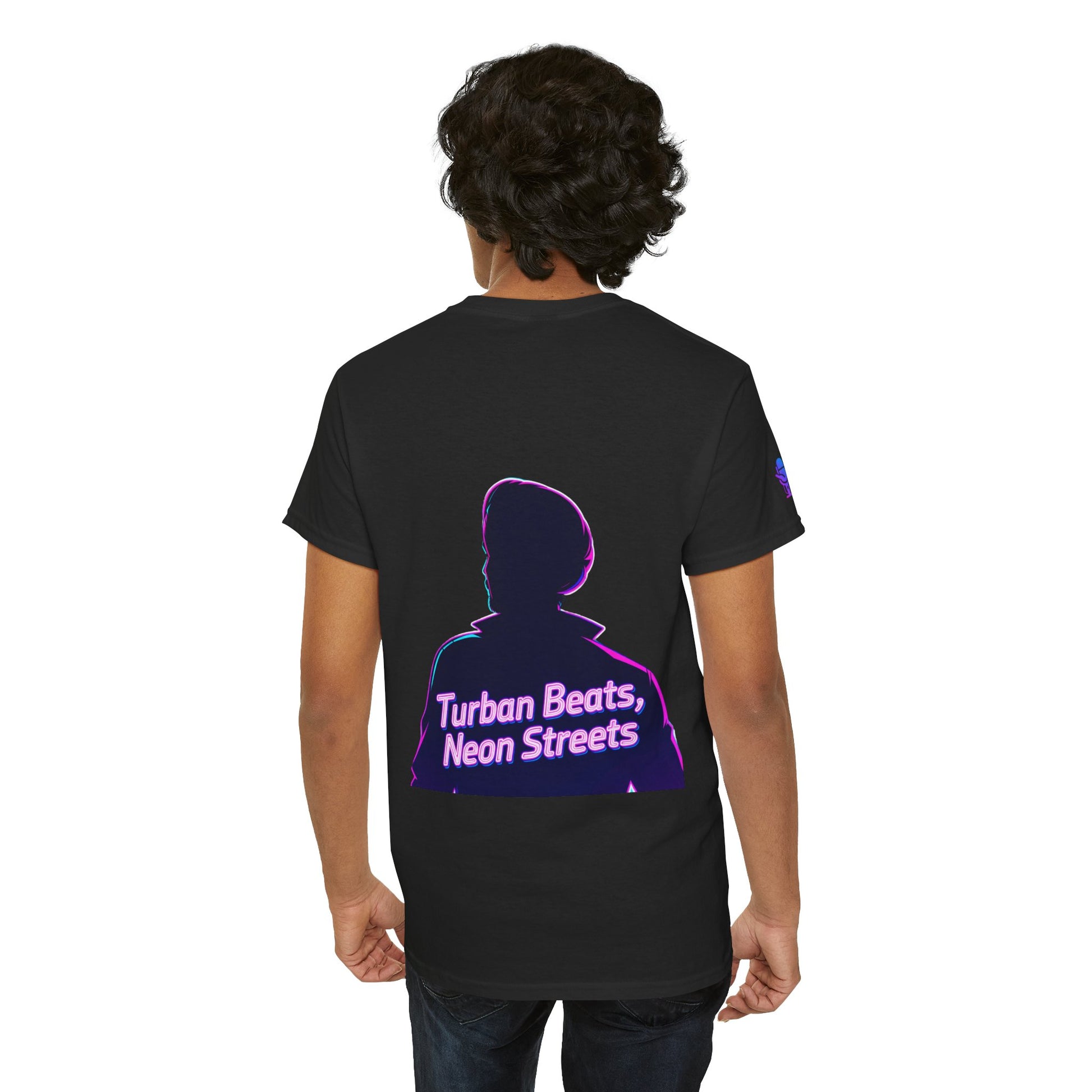 Stylish anime Punjabi performer design featuring a flashy jacket, neon turban aura, minimal abstract neon lines background, and bold punchline text “Turban Beats, Neon Streets”. Gives off a trendy and vibrant vibe, perfect for fans of anime and Punjabi culture. Ideal for casual wear or as a statement piece. Relevant for celebrations like festivals, concerts, and cultural events.