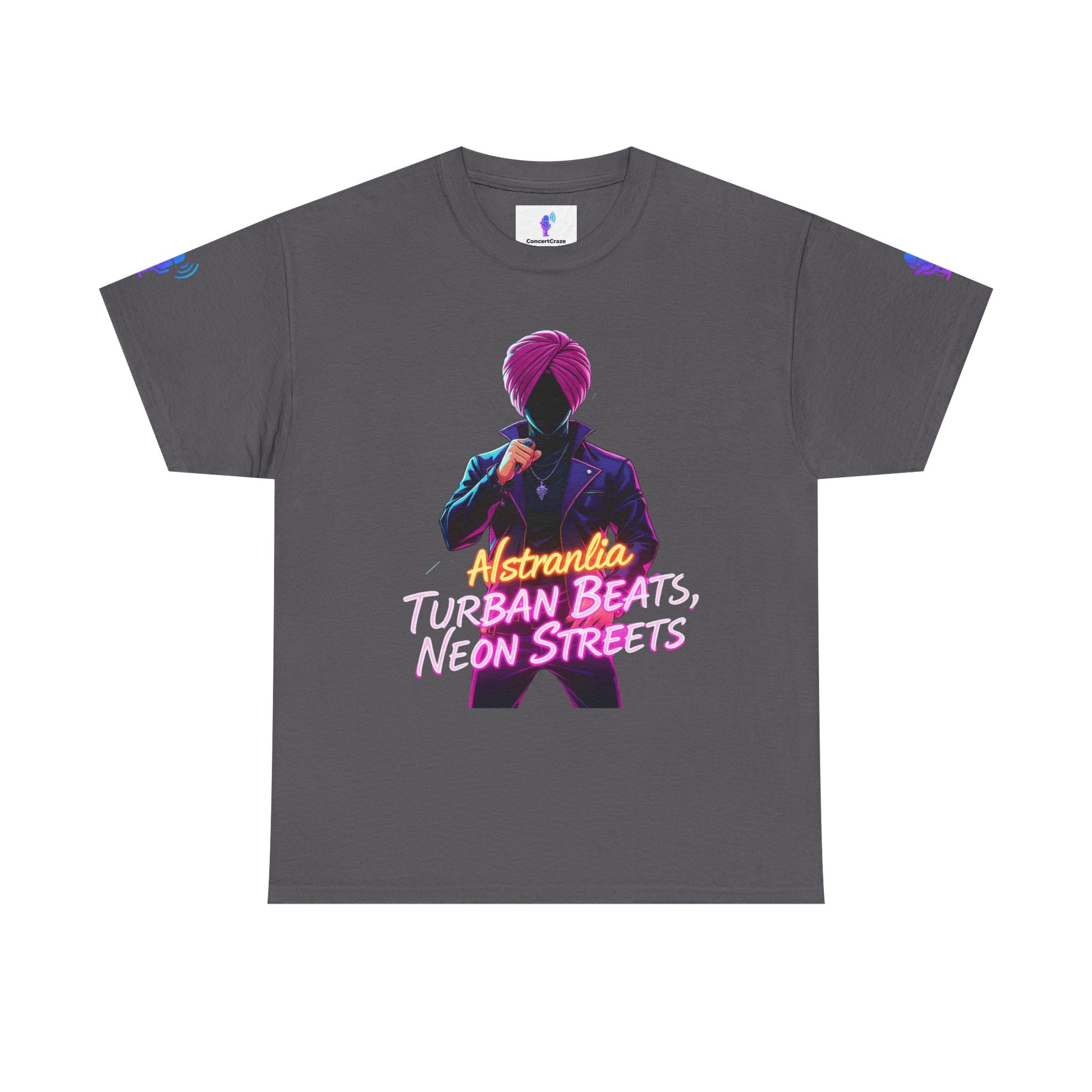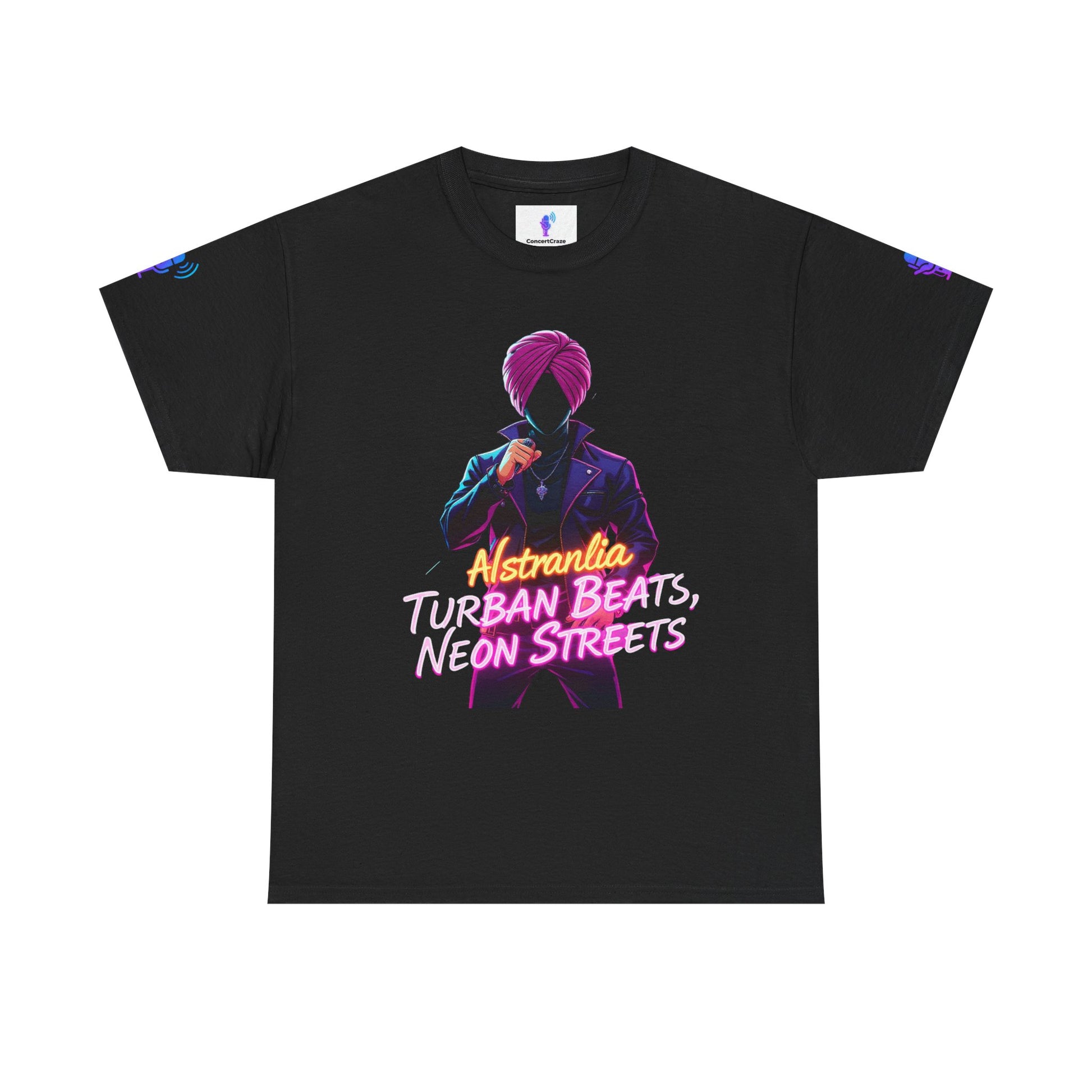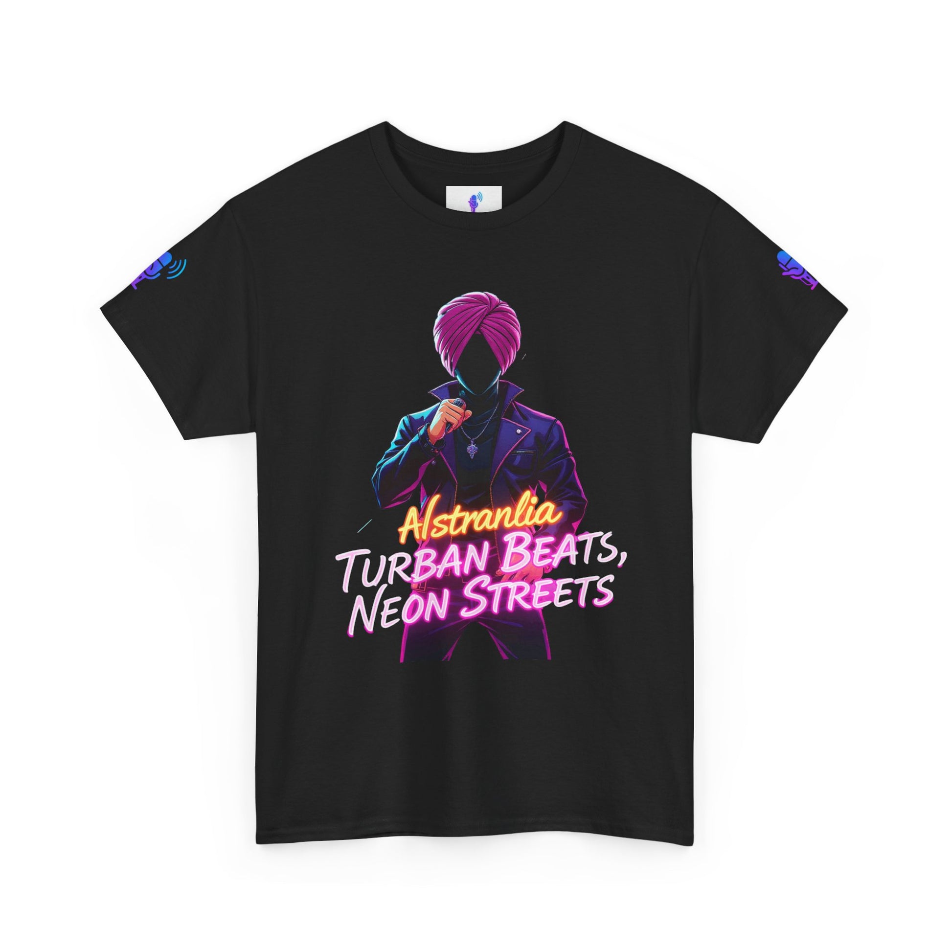 Stylish anime Punjabi performer design featuring a flashy jacket, neon turban aura, minimal abstract neon lines background, and bold punchline text “Turban Beats, Neon Streets”. Gives off a trendy and vibrant vibe, perfect for fans of anime and Punjabi culture. Ideal for casual wear or as a statement piece. Relevant for celebrations like festivals, concerts, and cultural events.